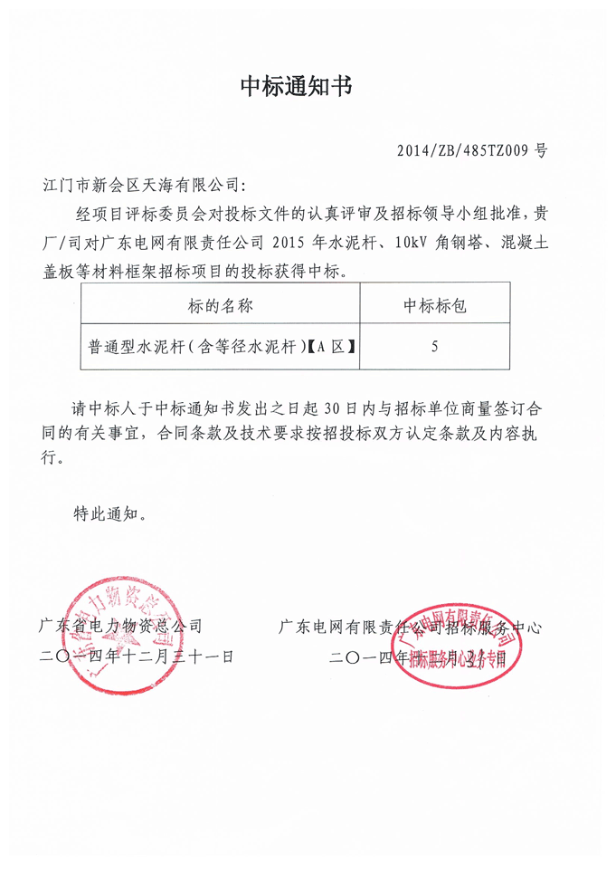 案例內(nèi)容:中標(biāo) 普通混凝土電桿