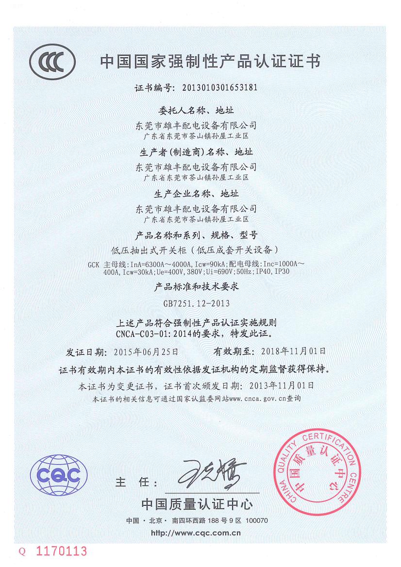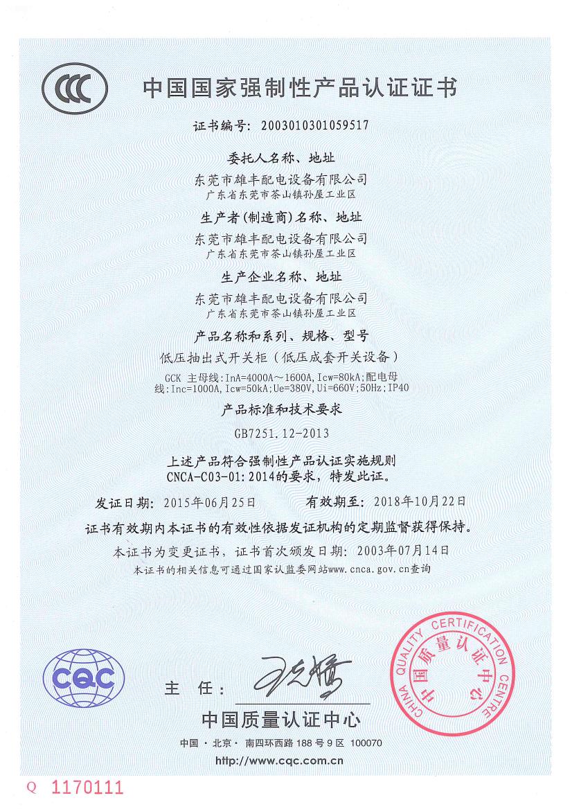 低壓成套GCK“3C”認(rèn)證