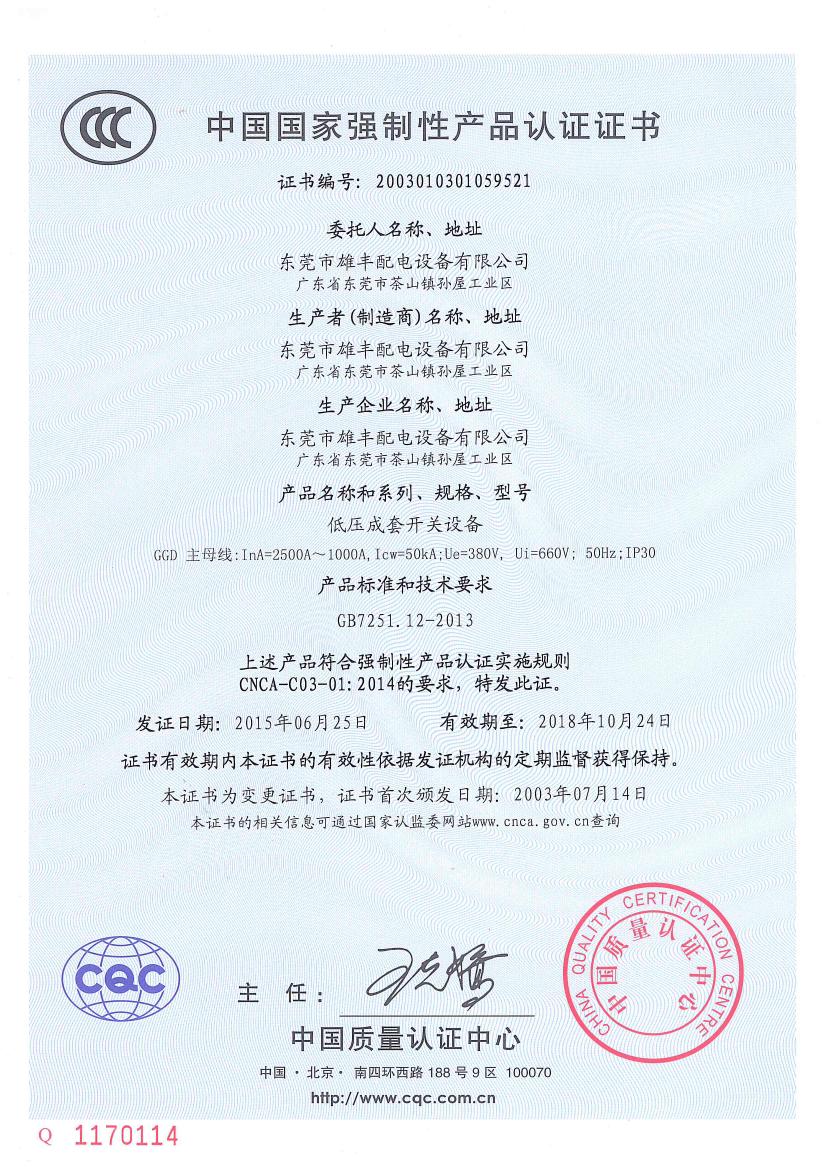 低壓成套GGD“3C”認(rèn)證