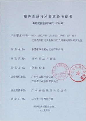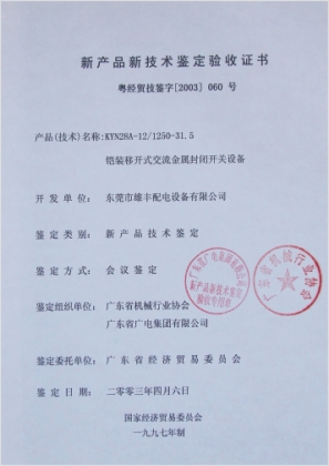 高壓新產(chǎn)品鑒定驗(yàn)收證書(shū)