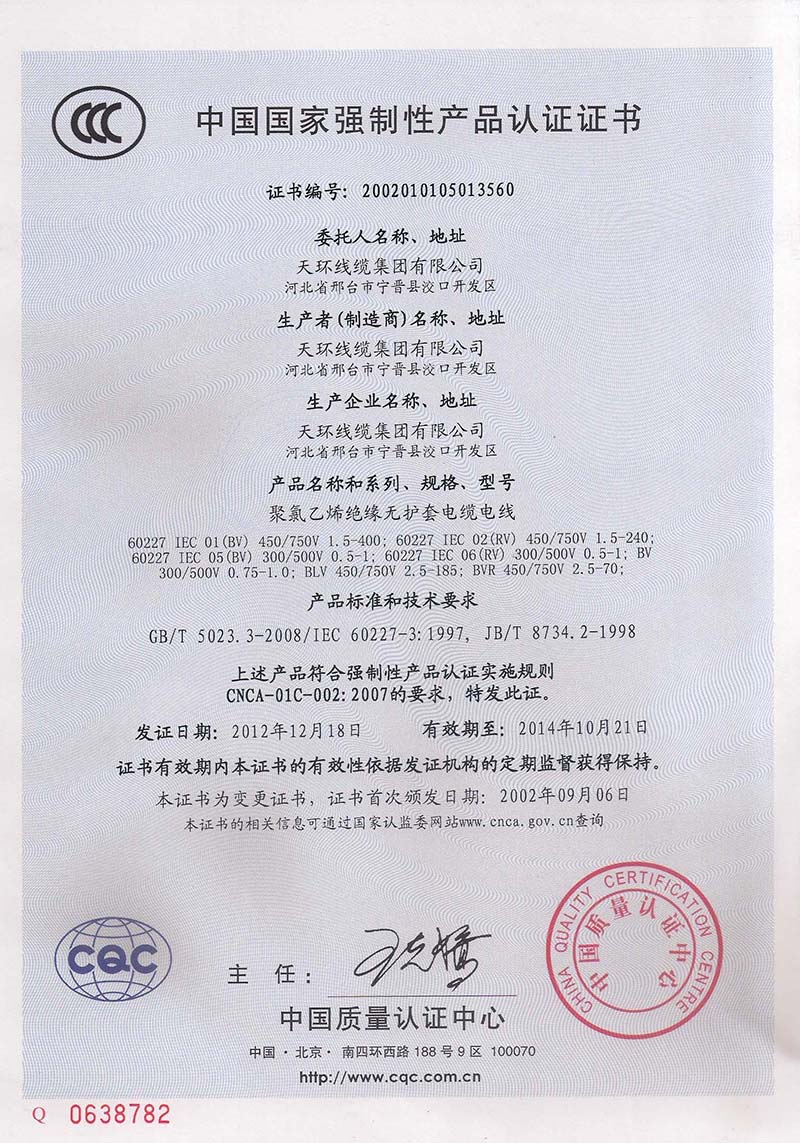 天環(huán)線纜集團(tuán)有限公司,座落于河北省邢臺(tái)境內(nèi),始建于2000年,占地面積11萬(wàn)平方米,建筑面積8.6萬(wàn)平方米,總資產(chǎn)1.2億,年生產(chǎn)能力20億元?,F(xiàn)擁有員工560名,其中中高級(jí)專業(yè)技術(shù)人才60名。公司主要生產(chǎn)品種有:高低壓電力電纜、 控制電纜、阻燃電纜、耐火電纜、橡套電纜、礦用電纜、通訊電纜、鋁合金電纜、鋼芯鋁絞線和各種型號(hào)的電線、裸電線等系列,100多個(gè)品種,上千種規(guī)格。產(chǎn)品廣泛應(yīng)用于電力、煤礦、水利、建筑、通訊及民用等多個(gè)領(lǐng)域,暢銷全國(guó)28個(gè)省、市、自治區(qū),深受廣大用戶好評(píng)。公司擁有一流的自動(dòng)化三層共擠干法交聯(lián)電纜生產(chǎn)線2條,先進(jìn)的電線、電纜生產(chǎn)線15條,30臺(tái)精密的檢測(cè)儀器和 技術(shù)精湛的操作人員,在質(zhì)量指標(biāo)與成品檢驗(yàn)方面做到:質(zhì)量損失率為0,工業(yè)產(chǎn)品銷售率98%,產(chǎn)品最終檢驗(yàn)合格率為100%,產(chǎn)品出廠合格率100%,用戶滿意度達(dá)97%以上。 公司堅(jiān)持把“以質(zhì)量求生存,以信譽(yù)求發(fā)展”作為企業(yè)的經(jīng)營(yíng)宗旨,所生產(chǎn)的“天環(huán)”點(diǎn)擊查看
