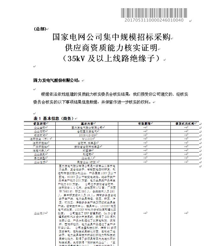 固力發(fā)電氣股份有限公司是由原合肥固力發(fā)電氣有限公司改制后成立的股份有限公司,成立于2006年12月,2014年12月改制為股份有限公司,注冊資本11000萬元。廠房總占地面積200.18畝,規(guī)劃總建筑面積195000平方米,總投資6.6億元。是目前安徽省內(nèi)規(guī)模最大的一家專業(yè)從事復(fù)合絕緣子、電力金具等輸配電器材研發(fā)、制造和銷售的企業(yè)。復(fù)合絕緣子年生產(chǎn)能力為300萬套,電力金具年生產(chǎn)能力3000噸,產(chǎn)能規(guī)模在國內(nèi)排名前十位。公司已通過ISO9001質(zhì)量管理體系、ISO14001環(huán)境管理體系和OHSAS18001職業(yè)健康安全管理體系認(rèn)證;2012年通過國家高新技術(shù)企業(yè)認(rèn)定;2013年榮獲安全生產(chǎn)標(biāo)準(zhǔn)化三級企業(yè)證書、安徽省A級納稅信用等級證書;2013年,“固力發(fā)”牌復(fù)合絕緣子被認(rèn)定為合肥名牌產(chǎn)品;2014年,“固力發(fā)”牌復(fù)合絕緣子被認(rèn)定為安徽名牌產(chǎn)品;2014年榮獲長豐縣縣長質(zhì)量獎。 公司堅持“質(zhì)量塑造品牌,科技推動發(fā)展”的宗旨,以“節(jié)能、環(huán)保、安全、免維護(hù)”的產(chǎn)品和周到的服務(wù)點擊查看
