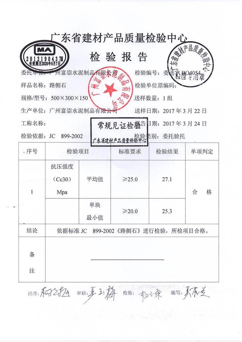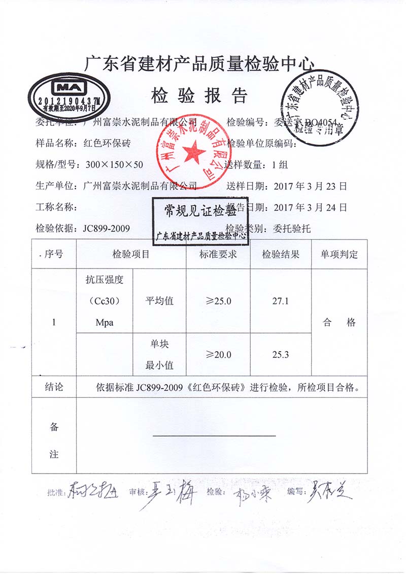 廣州富崇水泥制品有限公司是專業(yè)生產(chǎn)各種水泥建材用品的,具有20多年專業(yè)技術(shù)經(jīng)驗(yàn),其主要生產(chǎn)電纜蓋板、水溝蓋板、水泥樁、環(huán)保磚、路側(cè)石為主聯(lián)系方式:范生:13502404129 從開始到現(xiàn)在,我們經(jīng)過多年努力,以信譽(yù)、保質(zhì)、保量而得 到顧客的青睞,不斷更新設(shè)備,改進(jìn)生產(chǎn)程序,從半自動逐步 發(fā)展到自動流水線化,目前生產(chǎn)的環(huán)保磚系類產(chǎn)品已完成打包 裝的改造過程,減少了裝卸車難以解決的產(chǎn)品損耗問題,保證 了100%的成品率目標(biāo),我們能夠向用戶提供全面的售前與售后 服務(wù),產(chǎn)品以廣泛用于市政園林和水利工程,為建設(shè)帶來良好 的社會效益和經(jīng)濟(jì)效益。 我們生產(chǎn)場地占地面積10000多平方米,日產(chǎn)人行道磚可達(dá) 10000平方米,路側(cè)石10000平方米,實(shí)力雄厚,能滿足大型建 筑用戶的要求,面對建設(shè)熱潮的今天,本水泥制品將倍加努力 ,進(jìn)一步提高我們的產(chǎn)品質(zhì)量,生產(chǎn)出更符合時代要求的新型 產(chǎn)品,同時歡迎各用戶及設(shè)計(jì)的前來訂購,并對我們的產(chǎn)點(diǎn)擊查看