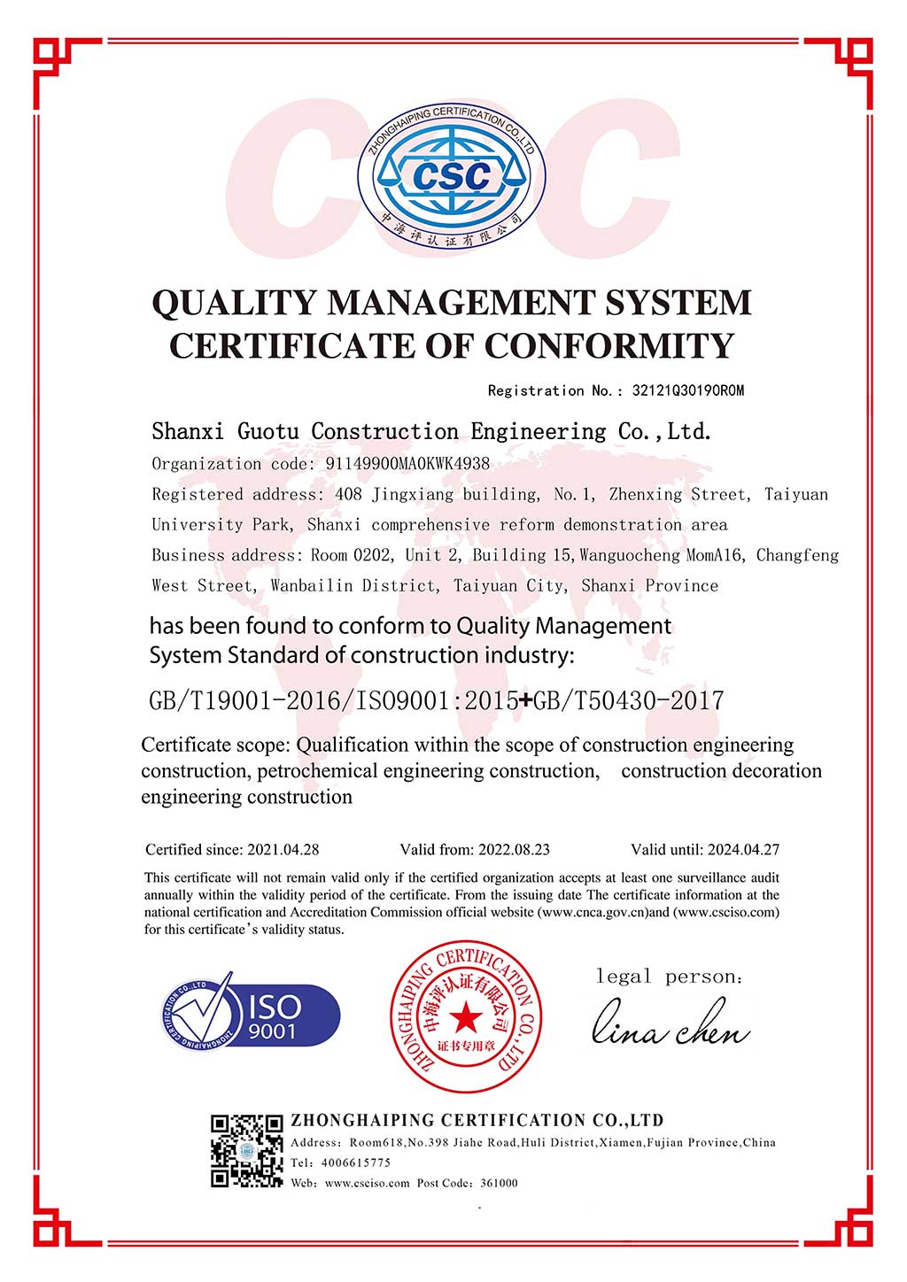 山西國圖建設(shè)工程有限公司成立于2019年12月30日,為國家房屋建筑施工總承包叁級資質(zhì),注冊資金30188.8888萬元,是房屋建筑、建筑裝修裝飾工程等為一體的綜合型公司,能承接各種大、中型工業(yè)與民用建筑的施工安裝任務(wù)。 近年來,公司自組建以來,秉承“爭創(chuàng)第一——團結(jié)、拼搏、開拓、爭先”的企業(yè)精神,以從事完全競爭性的建筑業(yè)為核心業(yè)務(wù)。 公司本著:“以質(zhì)量求信譽,以信譽求發(fā)展,以發(fā)展求生存”的宗旨,建立健全了一套先進的質(zhì)量管理體系,制定了合理的質(zhì)量管理制度,形成縱橫交叉的質(zhì)量監(jiān)控網(wǎng)絡(luò)。為推動質(zhì)量管理機制的科學(xué)規(guī)范運行,公司實行經(jīng)理掛帥,質(zhì)檢處與施工隊、質(zhì)檢員組成質(zhì)保體系逐級負責(zé),層層把關(guān),使每個工程、工點、工種、工序的質(zhì)量自檢縱橫交叉,互測互檢,不留空檔,使生產(chǎn)施工的全過程始終處在嚴格的質(zhì)量監(jiān)督當中。 同時,在全國部分城市設(shè)立了分支機構(gòu)。從而為企業(yè)的進一步發(fā)展,拓展了廣闊的空間,奠定了良點擊查看