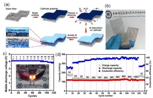 基于上述考慮,唐永炳研究員及其團隊成員蔣春磊、方月等人提出了一種新型的一體化柔性電池結(jié)構(gòu)設(shè)計理念,并成功研發(fā)出具有超快充放電性能的一體化柔性雙離子電池。
