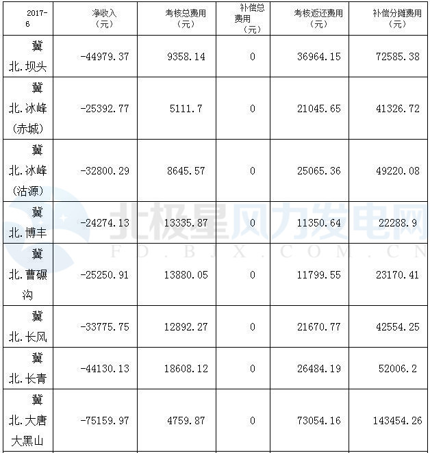 2017年6月份京津唐風(fēng)電場并網(wǎng)運行管理運行結(jié)算匯總表