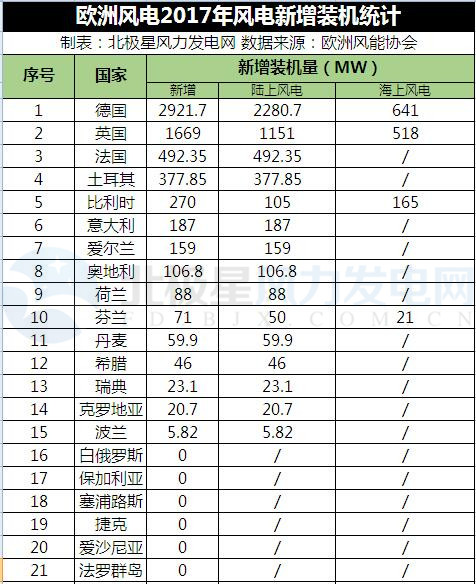 據歐洲風能協(xié)會統(tǒng)計,2017年上半年歐洲新增裝機6.5GW,其中歐盟國家新增6.1GW。歐盟陸上風電新增裝機4.8GW,主要集中在:德國2.2GW、英國1.2GW、法國492MW;海上風電新增裝機1.3GW,主要集中在四個國家:德國、英國、比利時、芬蘭。