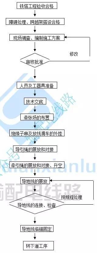 在展放導(dǎo)線前,清楚通道內(nèi)的障礙物,針對性的對各等級的電力線、公路、鄉(xiāng)村路、通訊線、光纜、果園等搭高跨越架。要選擇符合要求的牽引場、張力場場地,并對其進行平整,對于進場的道路要予以修補。正確懸掛絕緣子及放線滑車。