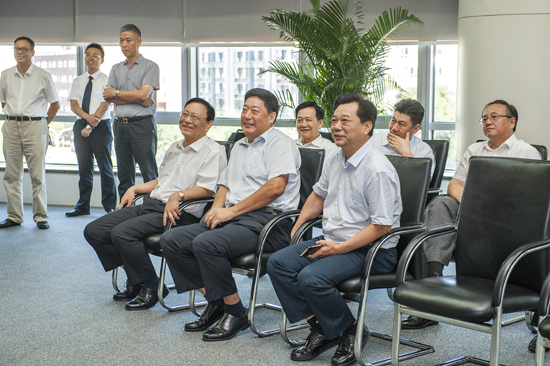 海南省國資委巡視員梁學(xué)偉,集團(tuán)公司副總經(jīng)理、黨組成員王森陪同參觀座談。
