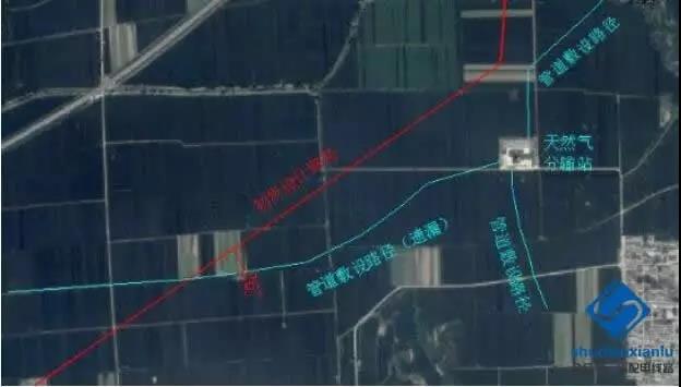 施工圖定位階段,在路徑周邊發(fā)現(xiàn)天然氣管道標示牌,且標示牌連續(xù)布置,管道走向明確,經(jīng)調(diào)查該管道為初步設(shè)計路徑遺漏的一處天然氣管道,原路徑與管道交叉角度為 26°,且未進行安全評估,不滿足規(guī)范要求。