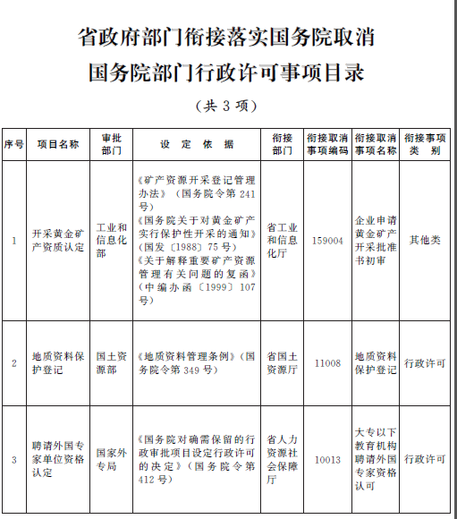 附件:1.省政府部門銜接落實國務(wù)院取消國務(wù)院部門行政許可事項目錄(共3項)