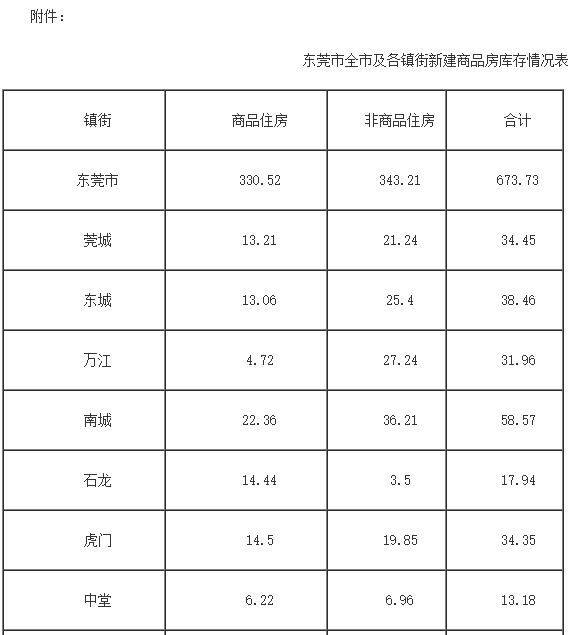 根據(jù)《廣東省供給側(cè)結(jié)構(gòu)性改革去庫存行動計劃(2016-2018年)》的工作部署,東莞被劃為二類城市(庫存規(guī)模在500-1000萬平方米),去庫存任務(wù)為在全部消化2016-2018年商品房供應(yīng)溢出部分的基礎(chǔ)上,化解40萬平方米商品房庫存,其中商品住房10萬平方米,非商品住房30萬平方米。