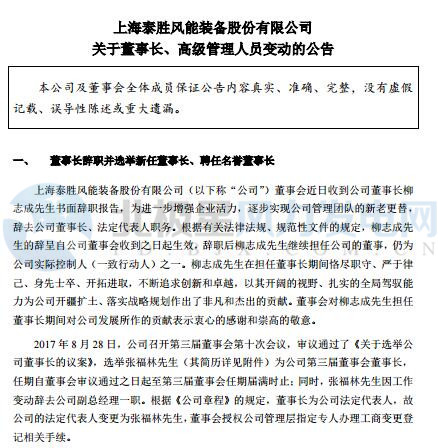 柳志成先生自公司成立以來,一直擔(dān)任公司董事長(或執(zhí)行董事),是公司最重要的領(lǐng)軍人物、靈魂人物,十幾年來,他帶領(lǐng)公司從小到大、由弱變強,發(fā)展成為國內(nèi)領(lǐng)先、國際知名的風(fēng)電裝備制造企業(yè)。“精工制造、仁德經(jīng)營”是柳志成先生提出的企業(yè)精神,“做最可信賴的企業(yè),塑造最可信賴的產(chǎn)品”是泰勝人在柳志成先生帶領(lǐng)下一致秉承的經(jīng)營理念,今后公司仍將繼續(xù)秉承這一精神及理念,在領(lǐng)域內(nèi)繼續(xù)進行深耕發(fā)展、做大做強。柳志成先生已辭去公司董事長職務(wù),辭職后柳志成先生仍在公司董事會任職,其作為公司實際控制人、董事,將在公司未來戰(zhàn)略發(fā)展、業(yè)務(wù)轉(zhuǎn)型、管理變革等方面繼續(xù)為公司建言獻策并給予指導(dǎo)和幫助。根據(jù)公司新任董事長張福林先生提名,董事會聘任柳志成先生為公司名譽董事長。