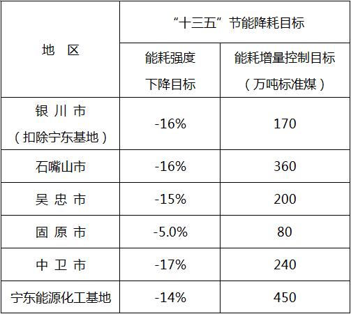 “十三五”五市、寧東能源化工基地節(jié)能降耗目標