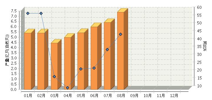 根據(jù)國(guó)家統(tǒng)計(jì)局公布數(shù)據(jù),2016年1~8月,全國(guó)鋰離子電池行業(yè)累計(jì)完成產(chǎn)量同比增長(zhǎng)29.06%。其中:8月份完成產(chǎn)量同比增長(zhǎng)45.16%。2016年全國(guó)鋰離子電池行業(yè)月度產(chǎn)量及同比如下圖所示。
