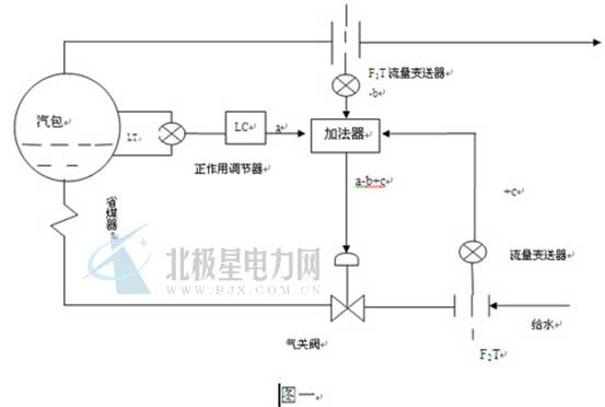 下圖一中所示的三沖量調(diào)節(jié)系統(tǒng)、汽包液位是被控變量,是主沖量信號;蒸汽流量和給水流量是輔助沖量信號。系統(tǒng)將蒸汽流量與給水流量前饋到汽包液位調(diào)節(jié)系統(tǒng)中,一旦蒸汽流量或給水流量波動(dòng),不是等到影響液位才進(jìn)行調(diào)節(jié),而是在這兩個(gè)量改變之時(shí)就能通過DCS系統(tǒng)中加法器立即去改變調(diào)節(jié)閥開度進(jìn)行校正。故大大提高了液位這個(gè)被調(diào)參數(shù)的調(diào)節(jié)精度,縮短調(diào)控時(shí)間。