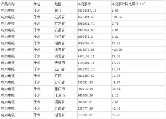原標(biāo)題:2015年上半年中國(guó)電力電纜產(chǎn)量情況