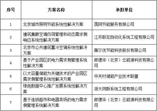 北京市電力需求側(cè)管理系統(tǒng)性解決方案承擔(dān)單位名單