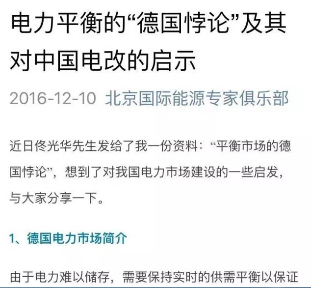導(dǎo)讀:近日佟光華先生給我發(fā)了一份資料:“平衡市場(chǎng)的德國悖論”,想到了對(duì)我國電力市場(chǎng)建設(shè)的一些啟發(fā),與大家分享一下。先來看看德國電力市場(chǎng)