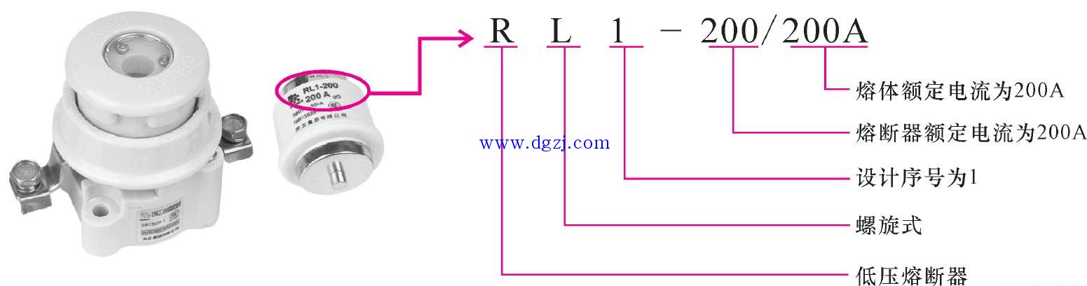 例如,上圖所示為典型熔斷器的銘牌標(biāo)識,從中可以了解其型號為“RL1-200/200A”,參照上述命名方法可了解其型號所標(biāo)識的含義。