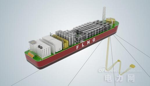 FLNG裝置形似集裝箱船,其設備可以接收、液化和儲存從海上油氣田中開采的天然氣。FLNG裝置在海上把液化天然氣傳輸?shù)揭夯烊粴獯?,并直接運輸和供給市場。