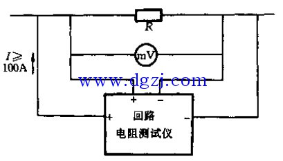 測量主回路的電阻,可以檢查主回路中的聯(lián)結(jié)和觸頭接觸情況,應(yīng)采用直流壓降法測量,測試電流不小于100A。若GIS有進出線套管,可利用進出線套管注入測量電流進行測量
