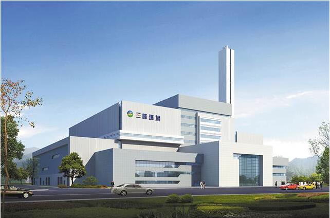 涪陵—長(zhǎng)壽生活垃圾焚燒發(fā)電廠項(xiàng)目一期工程效果圖。三峰環(huán)境產(chǎn)業(yè)集團(tuán)供圖