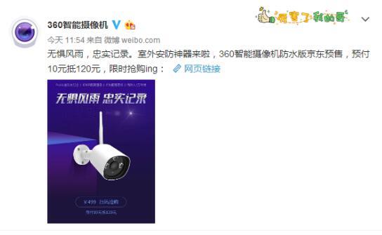 此次,360公司推出360智能攝像機防水版,無懼風雨挑戰(zhàn),24小時全方位守護用戶安全,已于今日開啟線上預售,還可接受預約訂購。此外,在預售期間成功下訂并支付定金的用戶可享10元抵120元的超值現(xiàn)金優(yōu)惠。