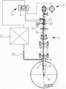 儀器和壓力變送器的信號輸出端與所述流量積算儀的信號輸入端相連,采用上述技術特征后可測量出管道內(nèi)溫合流體的準確溫度和壓力,并把測量結構輸入到流量積算儀,最終結合管道內(nèi)混合流體的流量、混合流體常溫常壓下的密度,并以管道內(nèi)的實際溫度和壓力作為補償,可在流量積算儀內(nèi)計算出管道內(nèi)混合流體的質(zhì)量流量。