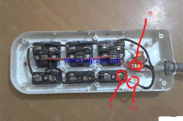 如下圖所示,拖線板接線時(shí)候,線頭需要接到2處,線頭就是我們說的火線,開關(guān)可以進(jìn)行控制它的開通與關(guān)閉。接線完成后,開關(guān)閉合是插座通電,相反則斷電。需要注意,排插的一定質(zhì)量不能太差,功率最好大一些。