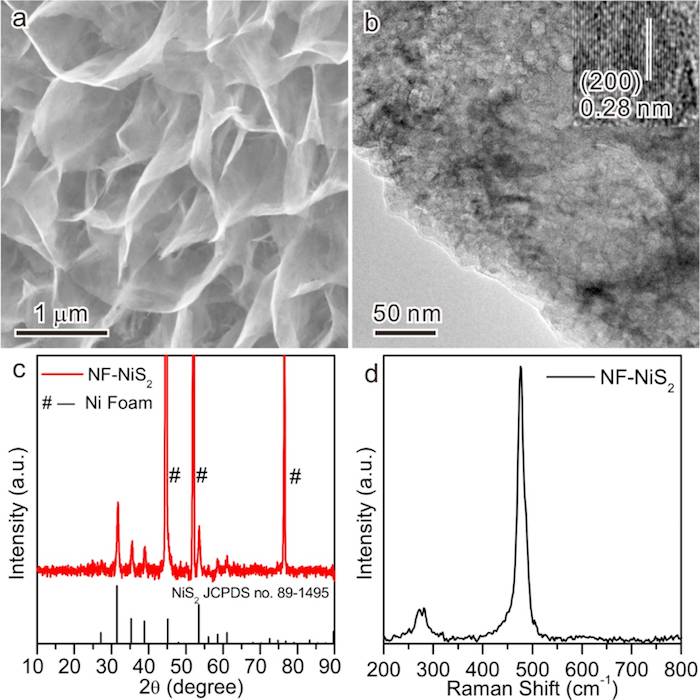 圖1. NF-NiS2的形貌和結(jié)構(gòu)表征