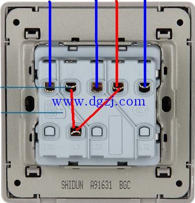 三聯(lián)單控開關(guān)怎么接線?三聯(lián)單控開關(guān)接線圖解 并不是5個接線孔就要接5根線,如圖,3開開關(guān)只需要4根線:1根火線+3根相線。 按圖先把火線接上(紅色線),然后相線(藍色)挨個碰,可能有的相線需要接一起的,所以線比較多