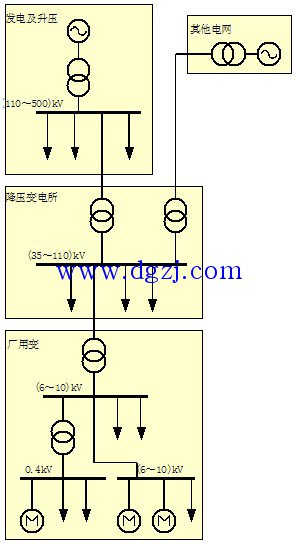 一個完整的電力系統(tǒng)由分布各地的各種類型的發(fā)電廠、升壓和降壓變電所、輸電線路及電力用戶組成,它們分別完成電能的生產(chǎn)、電壓變換、電能的輸配及使用。