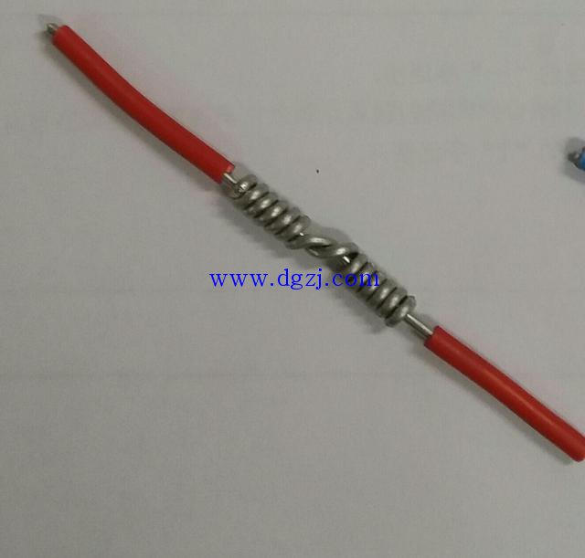 如圖所示:將兩股導線十字交叉,一股向外,一股向里,緊密纏繞在對方上。纏大于六圈即可,多余的剪掉,使每圈緊密貼合!