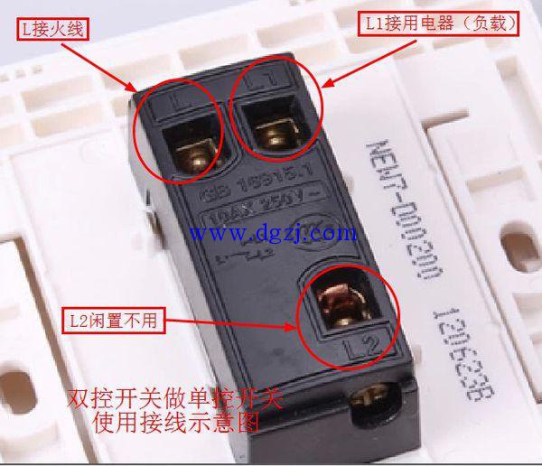 雙控開關(guān)做單控開關(guān)使用,L1或L2任選一個(gè)