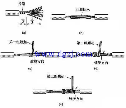 2、多股銅導(dǎo)線的分支連接,多股銅導(dǎo)線的T字分支連接有兩種方法。