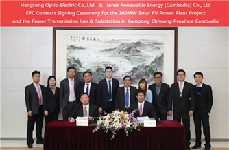亨通光電12月8日發(fā)布公告稱,與Inner公司簽署了柬埔寨200MW光伏EPC項目合同,項目總金額2億美元。根據(jù)公告,本光伏發(fā)電項目總裝機容量200MW,由兩個EPC合同組成,每個EPC合同裝機容量100MW,金額1億美元,合計金額2億美元