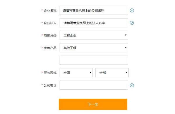 第三步:填寫完畢,點擊【下一步】,完成注冊。繼續(xù)點擊【企業(yè)認證】,進行免費報價。