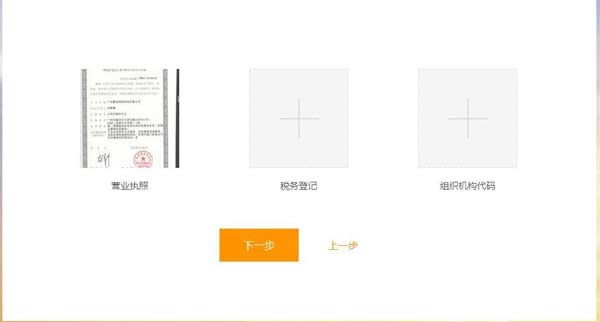 第三步:上傳企業(yè)營業(yè)執(zhí)照(需加蓋公章)、稅務登記證以及組織機構(gòu)代碼證等相關認證資料(格式為圖片JPG),確保認證的審核通過(如果是三證合一的企業(yè)僅上傳營業(yè)執(zhí)照即可)。點擊【下一步】,提交審核,橙電后臺審核通過即認證成功。