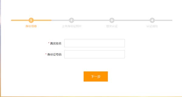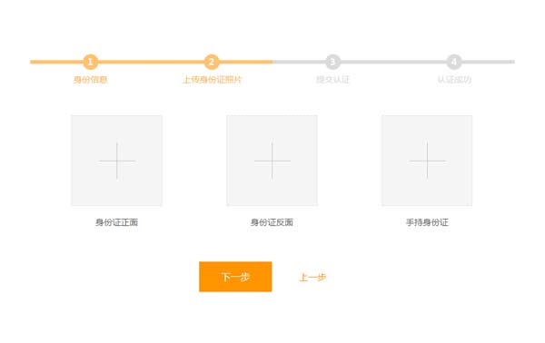第三步:上傳身份證正反面和個人手持身份證照片(格式為圖片JPG),點擊【下一步】,提交審核,橙電后臺審核通過即認證成功。