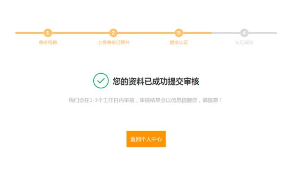 4 點擊“認證進度”,提交資料等待認證。認證期間也可在這里查詢認證進度。