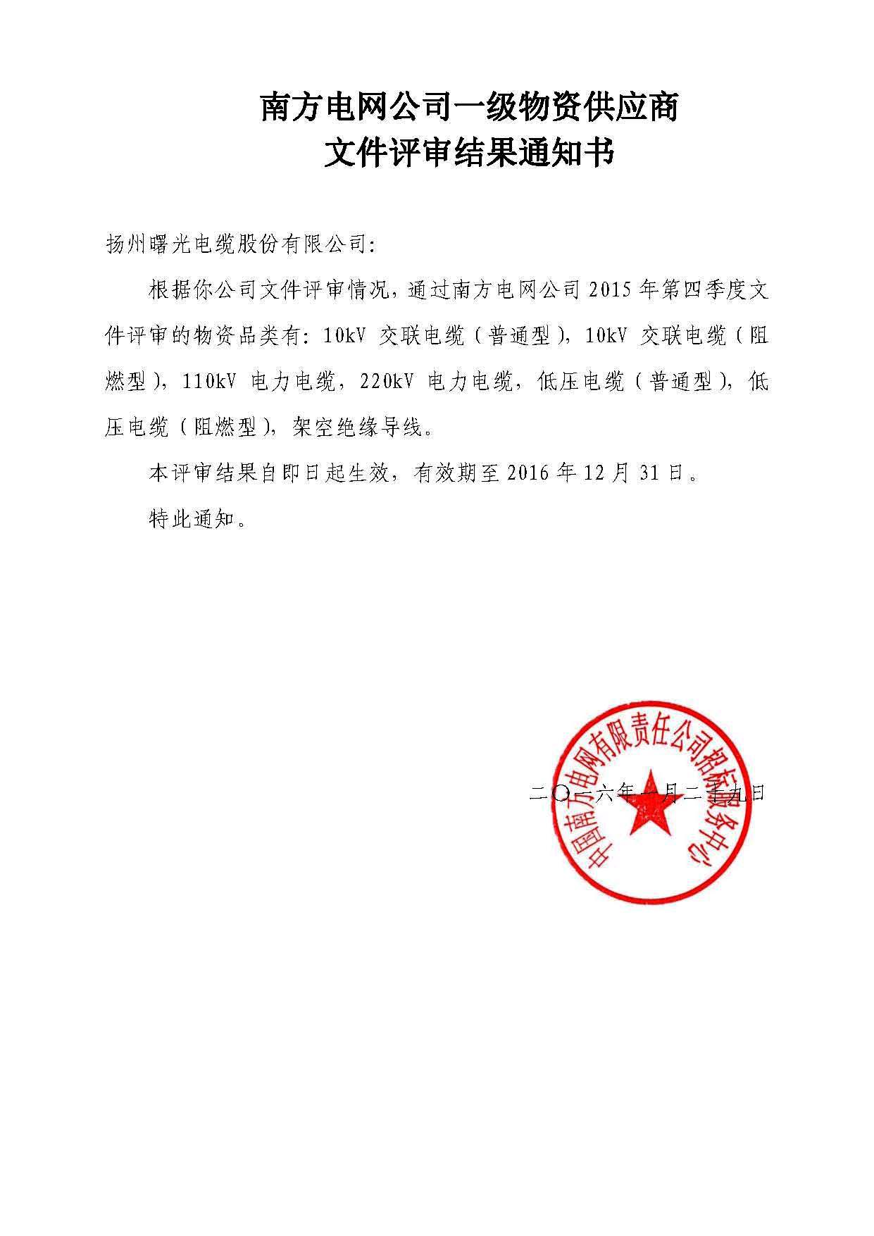 揚州曙光電纜股份有限公司是1985年創(chuàng)辦的專業(yè)生產(chǎn)電線電纜的企業(yè),位于風(fēng)景秀麗的歷史文化名城揚州市北郊。系國家級重點高新技術(shù)企業(yè),全國守合同重信用企業(yè),2017年中國線纜行業(yè)100強企業(yè),AAA級資信企業(yè),江蘇省優(yōu)秀民營企業(yè),江蘇省和諧勞動關(guān)系模范企業(yè),江蘇省勞動保障誠信示范企業(yè),江蘇省文明單位,江蘇省環(huán)境保護(hù)先進(jìn)單位。生產(chǎn)的“強菱”系列電纜是江蘇省名牌產(chǎn)品,“強菱”商標(biāo)是中國馳名商標(biāo)。董事長鄭連元同志先后被授予江蘇省優(yōu)秀企業(yè)家、江蘇省勞動模范等榮譽稱號。 公司占地面積20多萬平方米,擁有凈資產(chǎn)8.2億元,有員工近700人。1996年在全行業(yè)率先通過GB/T19001《質(zhì)量管理體系》認(rèn)證,并先后通過產(chǎn)品安全認(rèn)證,GB/T24001《環(huán)境管理體系》、GB/T28001《職業(yè)健康安全管理體系》認(rèn)證,GB/T19022《測量管理體系》認(rèn)證。主要產(chǎn)品有:500KV、220KV、110KV及以下交聯(lián)電力電纜、塑力纜、架空絕緣電纜、屏蔽控制和計算機電纜、核電站用1E級點擊查看