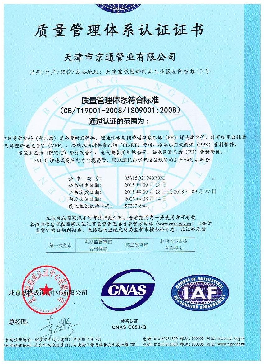 天津市京通管業(yè)有限公司生產(chǎn)給水用PP-R、PE給水管、鋼絲網(wǎng)骨架管、PVCU給水管,排水用U-PVC管、雙壁波紋管、鋼帶增強螺旋波紋管,PVC電工管套、C-PVC地埋式高壓電力電纜套管、碳素管、多孔梅花管等系列產(chǎn)品,歡迎顧客洽談,聯(lián)系電話:18702288382點擊查看