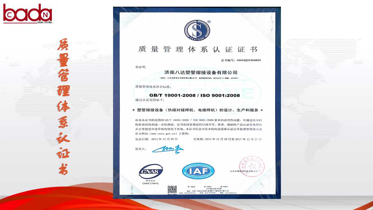 濟(jì)南八達(dá)塑管熔接設(shè)備有限公司專業(yè)生產(chǎn)、銷售“八達(dá)”品牌的熱熔對(duì)接焊機(jī)、全自動(dòng)熱熔對(duì)接焊機(jī)、管件熱熔對(duì)接焊機(jī)、馬鞍形異徑熱熔對(duì)接焊機(jī)、塑料管道多角度切割鋸、電熔焊機(jī)、手持承插焊機(jī)、以及各種施工專用輔助工具等多種型號(hào)和系列的產(chǎn)品。產(chǎn)品被國內(nèi)各管材、管件生產(chǎn)廠家、自來水公司、燃?xì)夤?、專業(yè)施工單位等廣泛使用,并以其優(yōu)秀的性價(jià)比和可靠的質(zhì)量贏得了市場的廣泛青睞。點(diǎn)擊查看