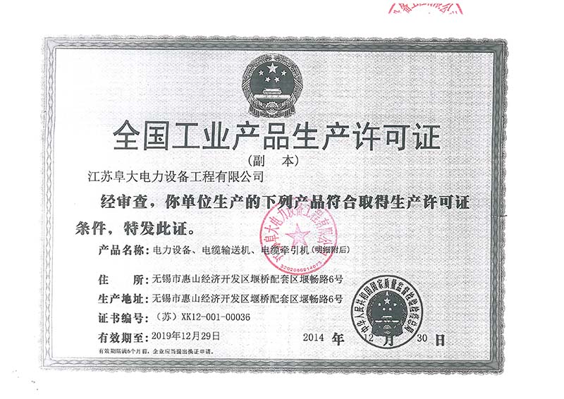 江蘇阜大電力設(shè)備工程有限公司。本公司注冊(cè)資金2600萬元,固定資產(chǎn)5000萬元,現(xiàn)有職工186人,擁有電力承裝修資質(zhì),機(jī)電設(shè)備安裝資質(zhì),ISO9001國(guó)際質(zhì)量體系認(rèn)證。公司在全國(guó)各地專業(yè)敷設(shè)各種型號(hào)各種難度的電纜,從高壓到低壓。另外我公司是國(guó)內(nèi)大的電纜輸送機(jī)及電力施工工具生產(chǎn)廠家,多年來阜大靠在誠(chéng)信及努力不斷的向集團(tuán)化企業(yè)邁進(jìn),生產(chǎn)的產(chǎn)品深受廣大用戶的認(rèn)可和施工方的信任。 本公司生產(chǎn)的 電纜輸送機(jī)、電纜敷設(shè)機(jī)、電纜牽引機(jī)、電纜滑車、電纜放線架、電纜放線盤、超高壓液壓泵、導(dǎo)線壓接機(jī)、放線、緊線、切剝線、起重、登高等各類電力施工機(jī)具,品種、規(guī)格齊全。具有結(jié)構(gòu)新穎、性能優(yōu)良、操作簡(jiǎn)單、使用安全、攜帶方便等特點(diǎn)。主要產(chǎn)品均經(jīng)國(guó)家電力公司電力工程施工機(jī)械質(zhì)量檢測(cè)中心檢測(cè)。 本公司有較強(qiáng)的設(shè)計(jì)能力,優(yōu)良的制造設(shè)備,完善的質(zhì)量控制體系,并通過了ISO9001﹕2012質(zhì)量管理體系認(rèn)證,從而確保了產(chǎn)品質(zhì)量的長(zhǎng)期穩(wěn)點(diǎn)擊查看