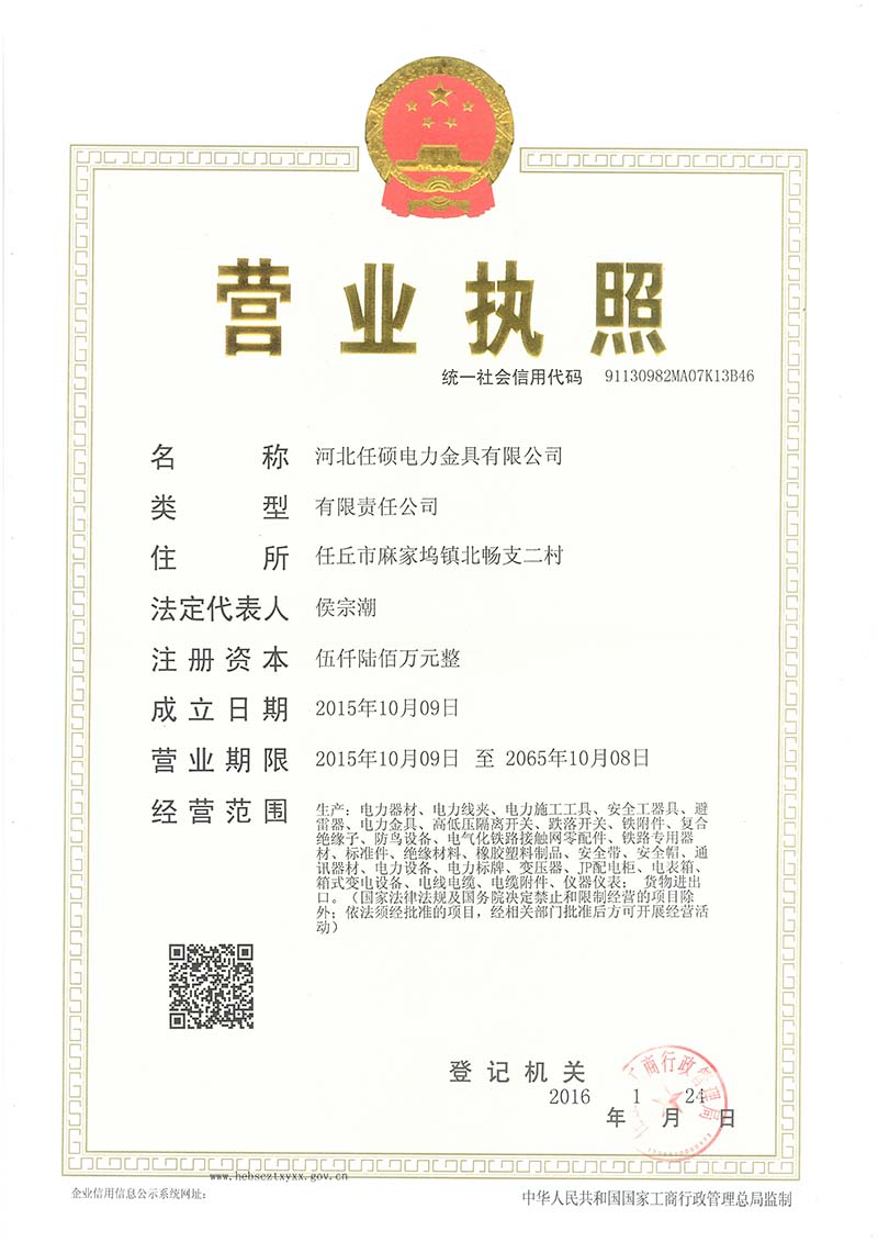 河北任碩電力金具有限公司主要經(jīng)營:生產(chǎn):電力器材、電力線夾、電力施工工具、安全工器具、避雷器、電力金具、高低壓隔離開關、跌落開關、鐵附件、復合絕緣子、防鳥設備、電氣化鐵路接觸網(wǎng)零配件、鐵路專用器材、標準件、絕緣材料、橡膠塑料制品、安全帶、安全帽、通訊器材、電力設備、電力標牌、變壓器、JP配電柜、電表箱、箱式變電設備、電線電纜、電纜附件、儀器儀表;貨物進出口。(國家法律法規(guī)及國務院決定禁止和限制經(jīng)營的項目除外;yfpz)等產(chǎn)品。公司尊崇“踏實、拼搏、責任”的企業(yè)精神,并以誠信、共贏、開創(chuàng)經(jīng)營理念,創(chuàng)造良好的企業(yè)環(huán)境,以全新的管理模式,完善的技術,周到的服務,卓越的品質為生存根本,我們始終堅持用戶至上 用心服務于客戶,堅持用自己的服務去打動客戶。點擊查看