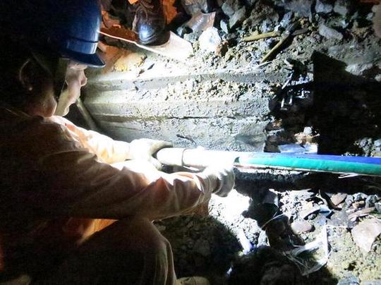 7月30日晚,東莞長安供電分局工作人員連夜在長安上角社區(qū)瑩光路修復(fù)故障電纜。(梁順發(fā)攝)