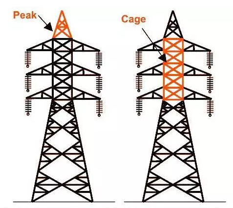 頂交叉臂上方的部分稱為輸電塔峰值。一般接地屏蔽線連接到這個峰的頂端。