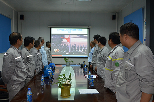 “金戈鐵馬,氣吞萬里如虎。”上午8點10分,在項目部第二會議室召開了紀念建軍90周年座談會,共同觀看了宏偉、盛大的《慶祝中國人民解放軍建軍90周年閱兵》視頻。當舉行升旗儀式時,參會的復退轉(zhuǎn)軍人紛紛站起,如參加閱兵的戰(zhàn)士,五星紅旗在斗志昂揚的歌聲中升起。一列列軍隊整齊有序,直升機、坦克、步戰(zhàn)車應(yīng)接不暇,讓人慷慨激昂,躊躇滿志,為祖國繁榮昌盛感到自豪、驕傲。