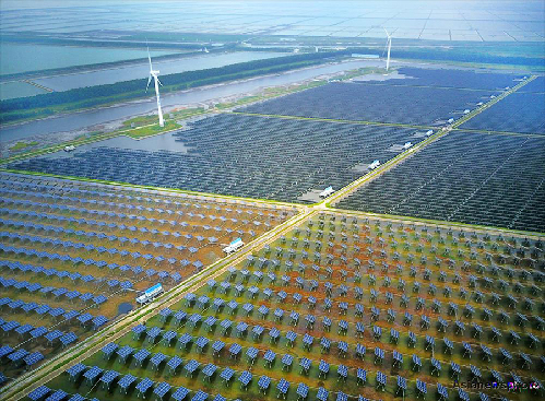 “風(fēng)光漁”互補產(chǎn)業(yè)基地是江蘇省東臺沿海灘涂綜合開發(fā)先導(dǎo)區(qū)的重要組成部分,形成上有風(fēng)力發(fā)電、中有光伏利用、下有水面養(yǎng)殖的“風(fēng)光漁”立體開發(fā)模式,實現(xiàn)了灘涂資源高效利用效益最大化,建成全球單體規(guī)模最大的灘涂風(fēng)光電產(chǎn)業(yè)基地。